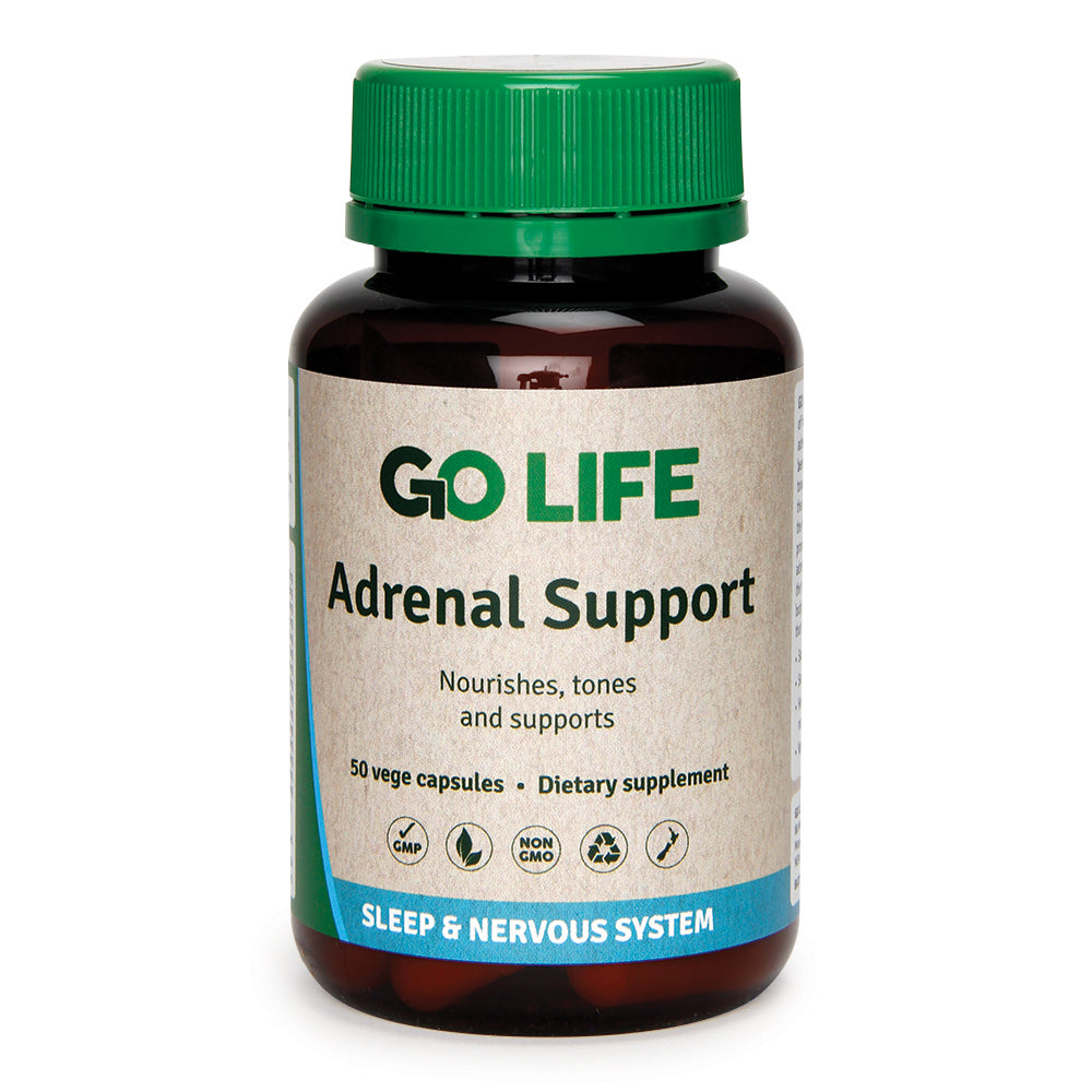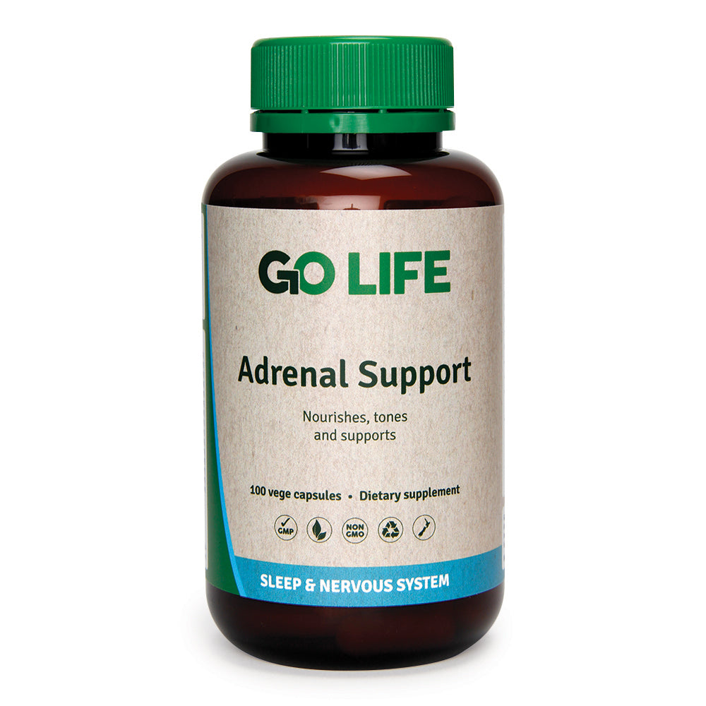GO LIFE Adrenal Support is a comprehensive blend of herbs, vitamins and minerals that support healthy adrenal function.
